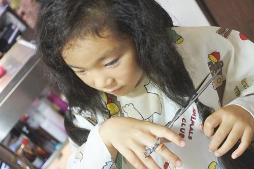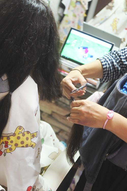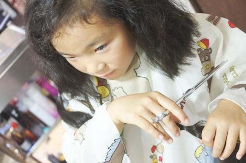 初めてのヘアドネーションカットの記念に第一刀目は