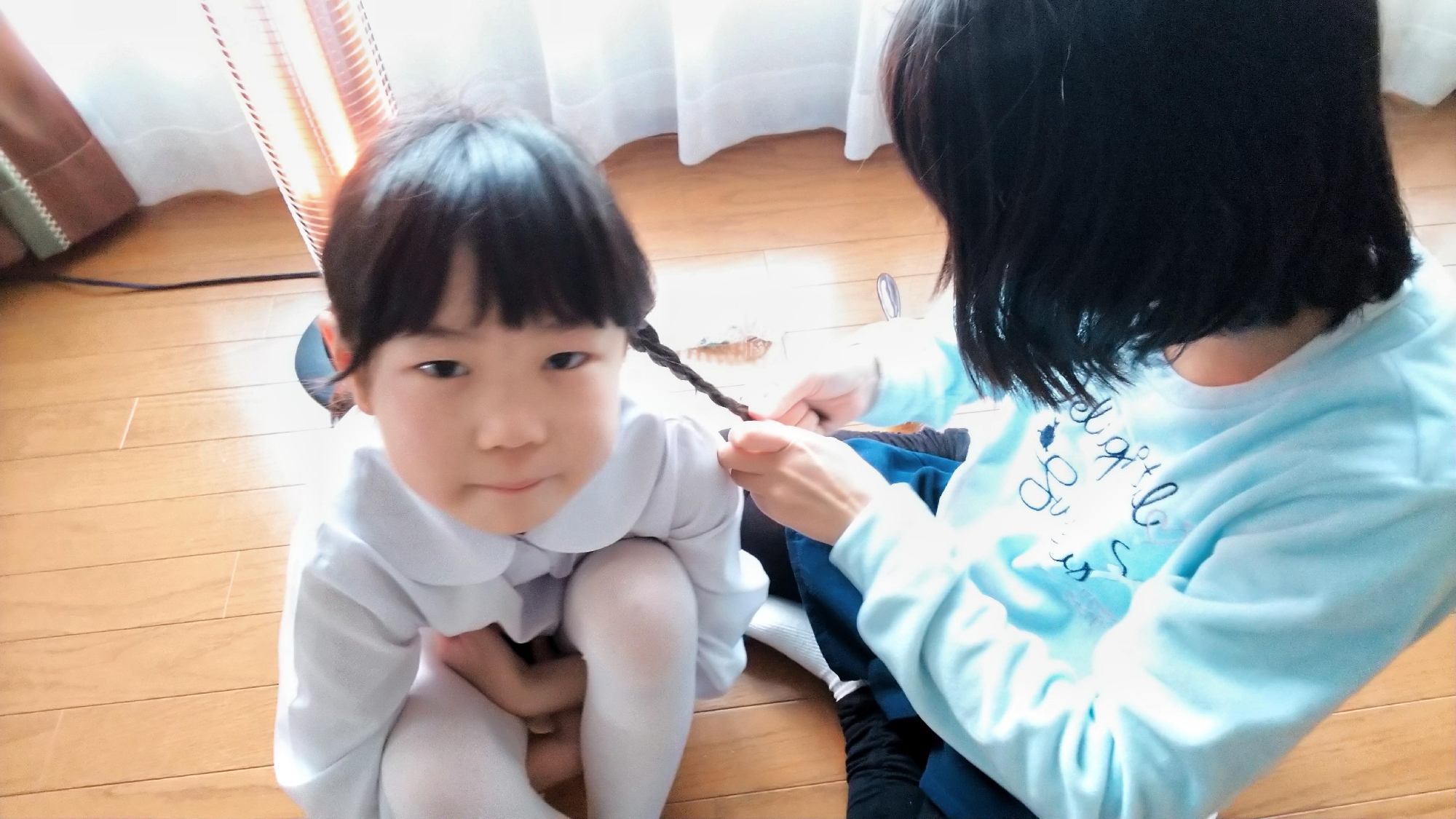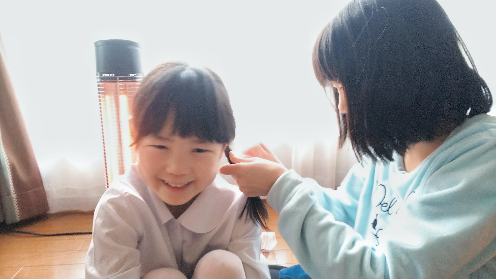 朝、長女のハルカが妹の髪をセットしてあげてました。