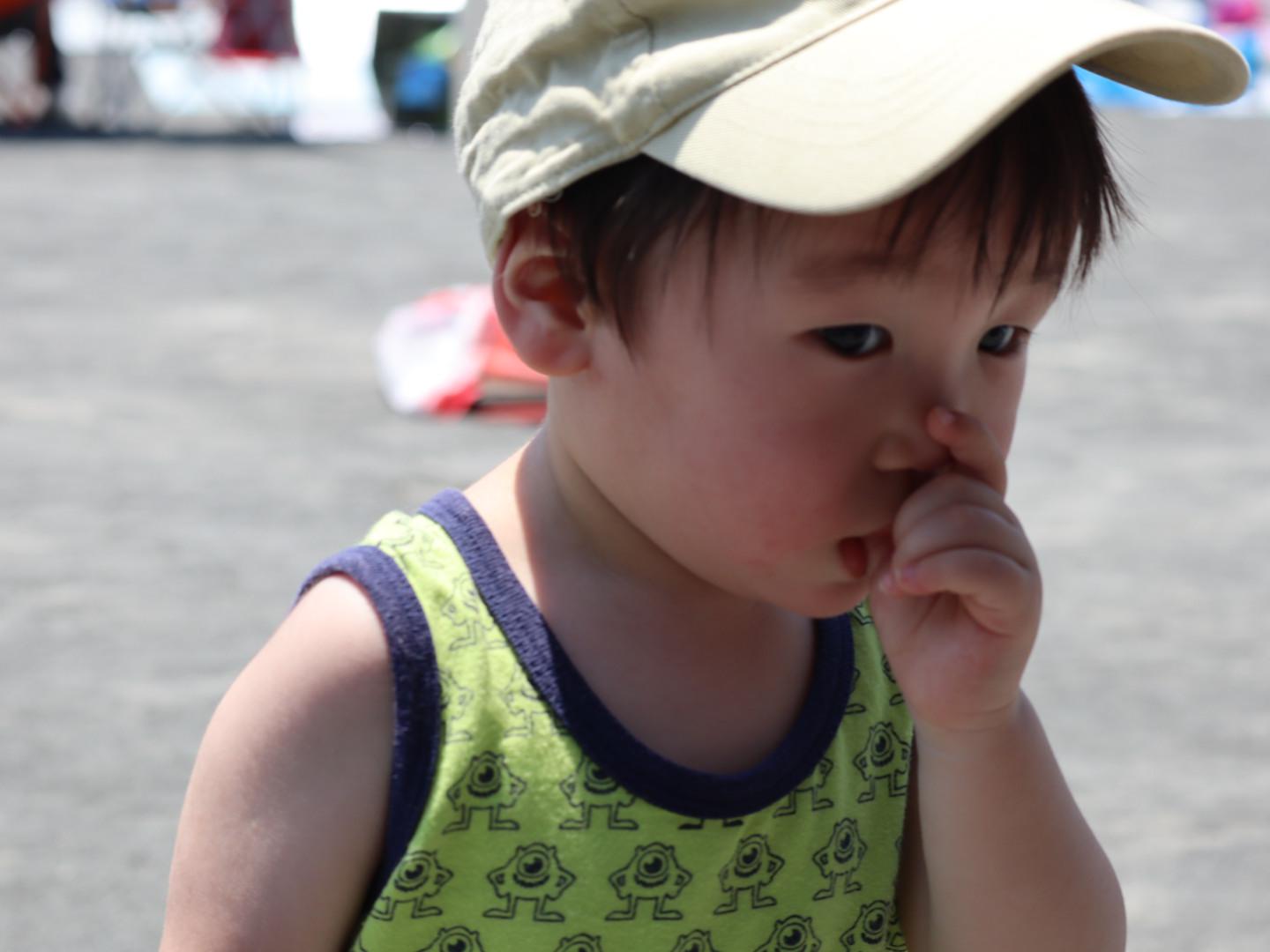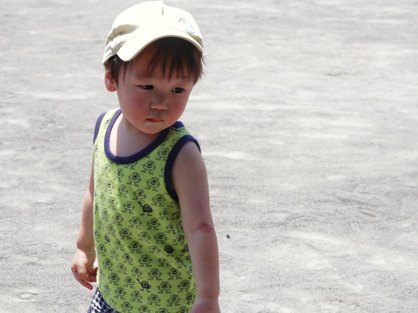 あっついからぼうしかぶってな