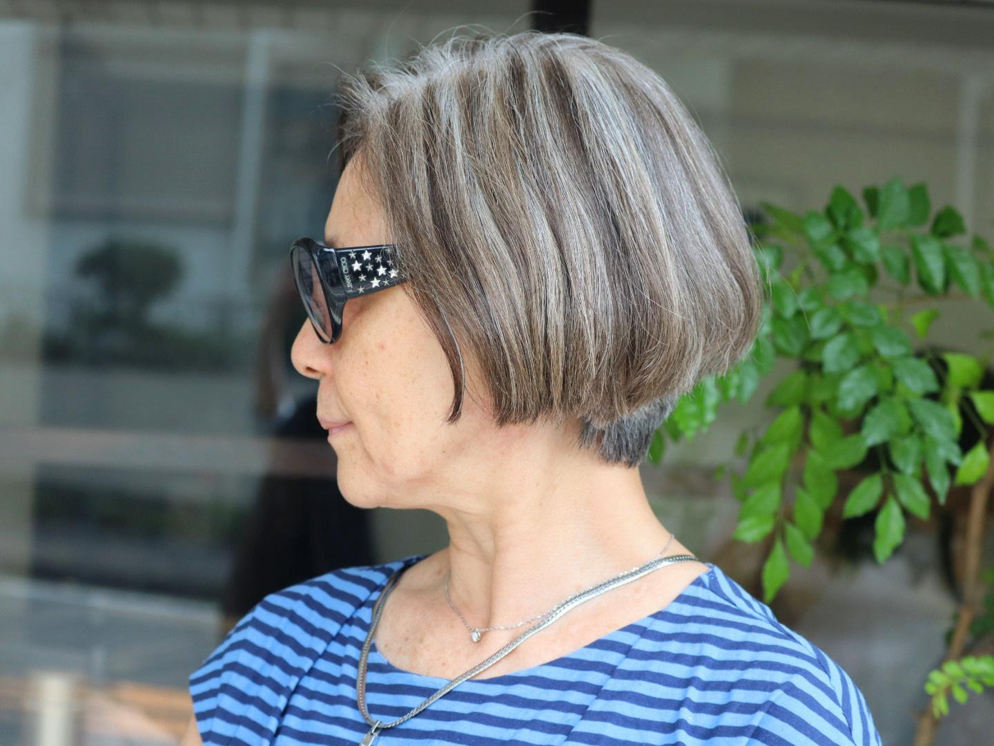 でも、ある日から白い髪も一つのオシャレとして活かせるように、ホイルワークで色をいれる。というのをしてから、それが定番になっています。
