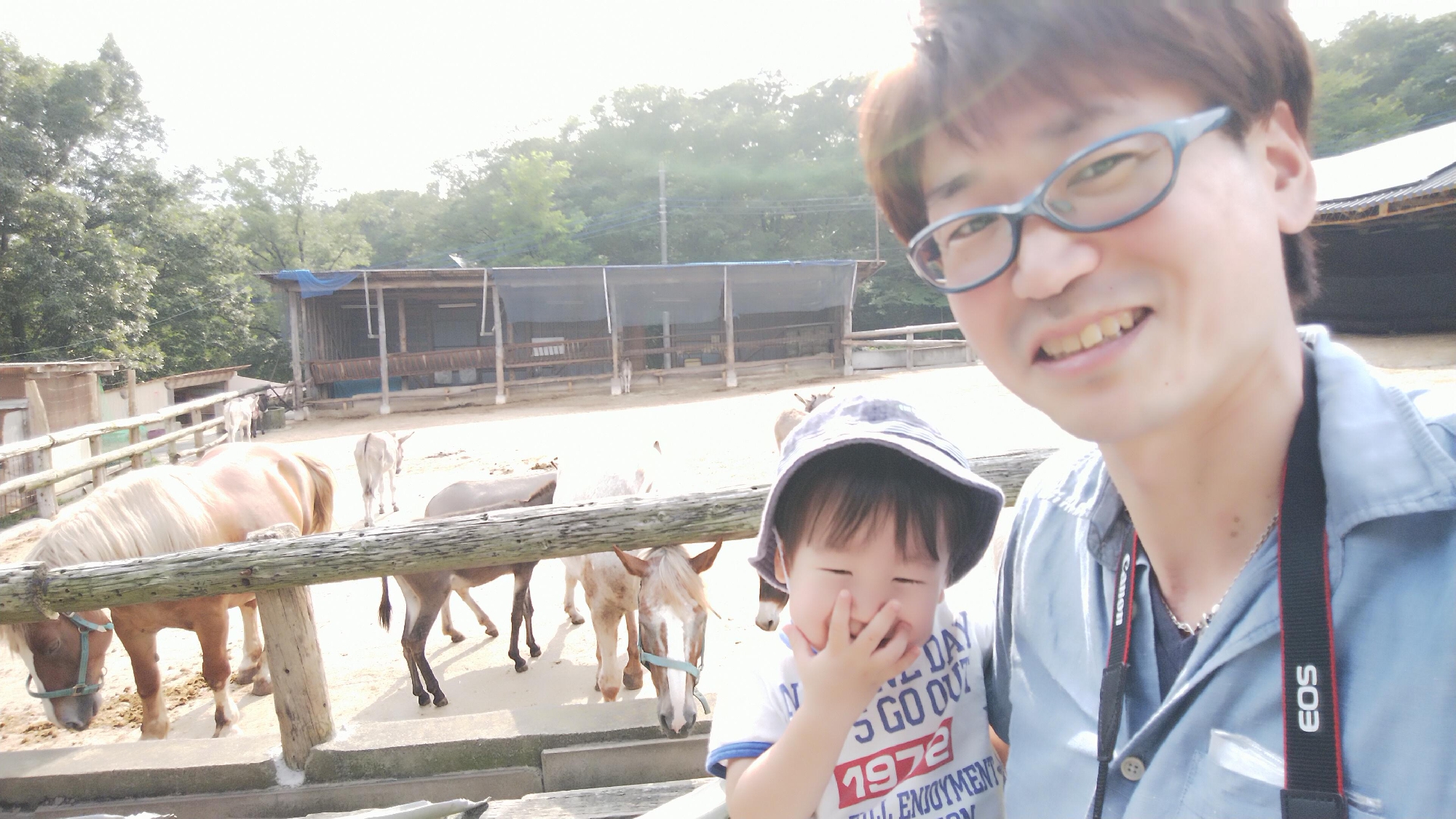 写真は那須の牧場で、くさいくさいをする息子のヒロトです笑
