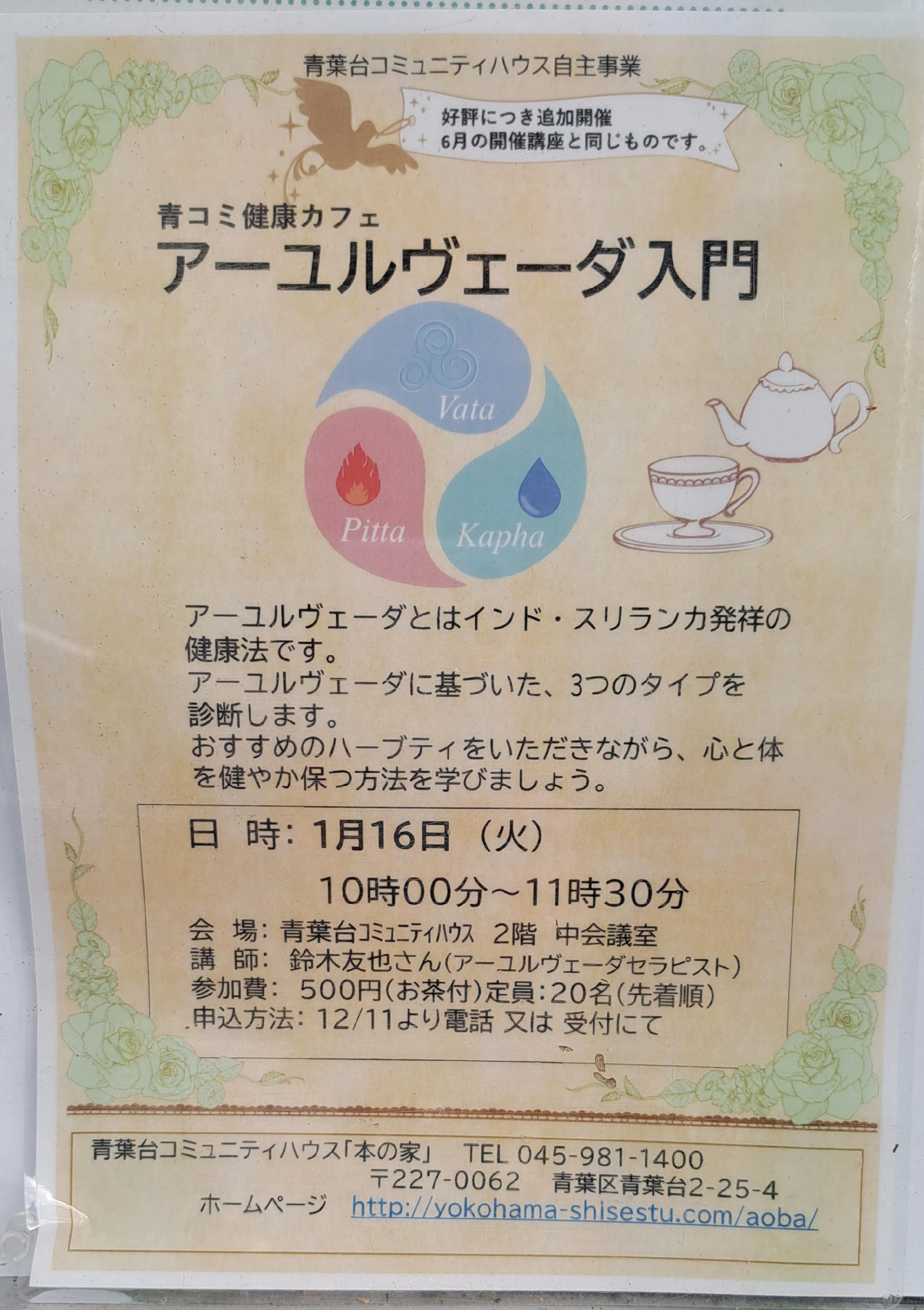 来年の1月16日のアーユルヴェーダ入門講座